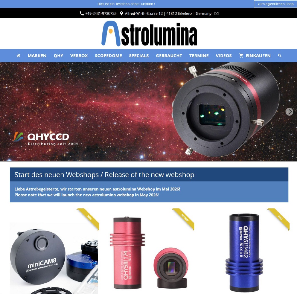 Der neue astrolumina-Webshop, von Ihrer QHYCCD-Distribution, öffnet zur Astromesse ATT am 9. Mai 2026!