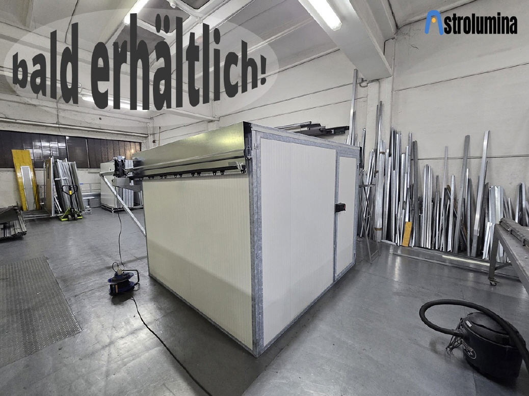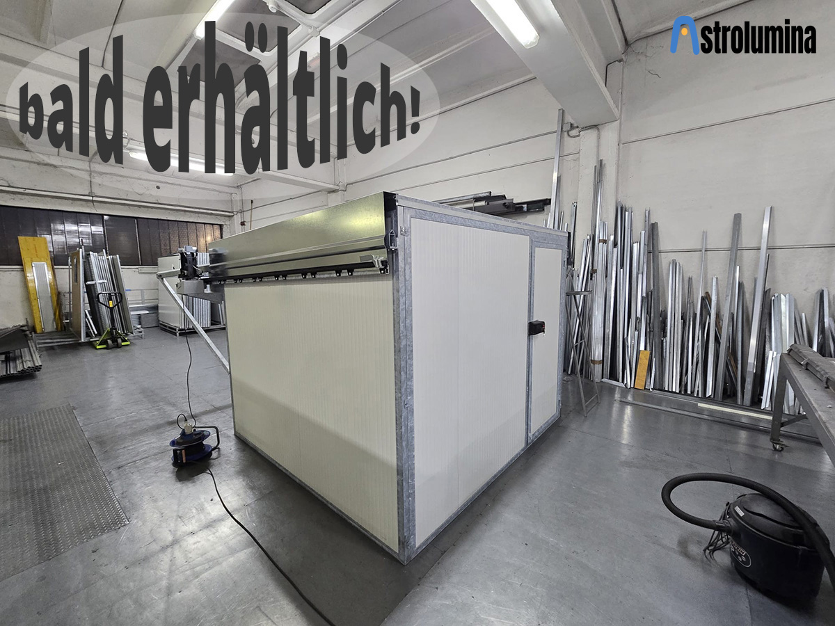 Astro Clamshell-Kuppel aus Glasfasermaterial mit einem Durchmesser von 3m und einer Höhe von 3,1 m. Das Gewicht beträgt 300 kg. mehr